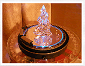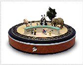 ジオマルにファンタジックな観覧車を表現しました。職人による一品一品手作りのこの観覧車は、LEDによる照明とゴンドラの回転機能が組み込まれています。ベースがジオマルなので、レールはショーティートレイン対応。スピードコントロール機能も付いています。照明器具としての使用を考慮し、電源はACタイプとしています。 |